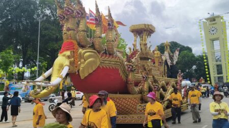 ชาวตรังพร้อมใจกันลากเรือพระอย่างคึกคักตลอดทั้งวัน