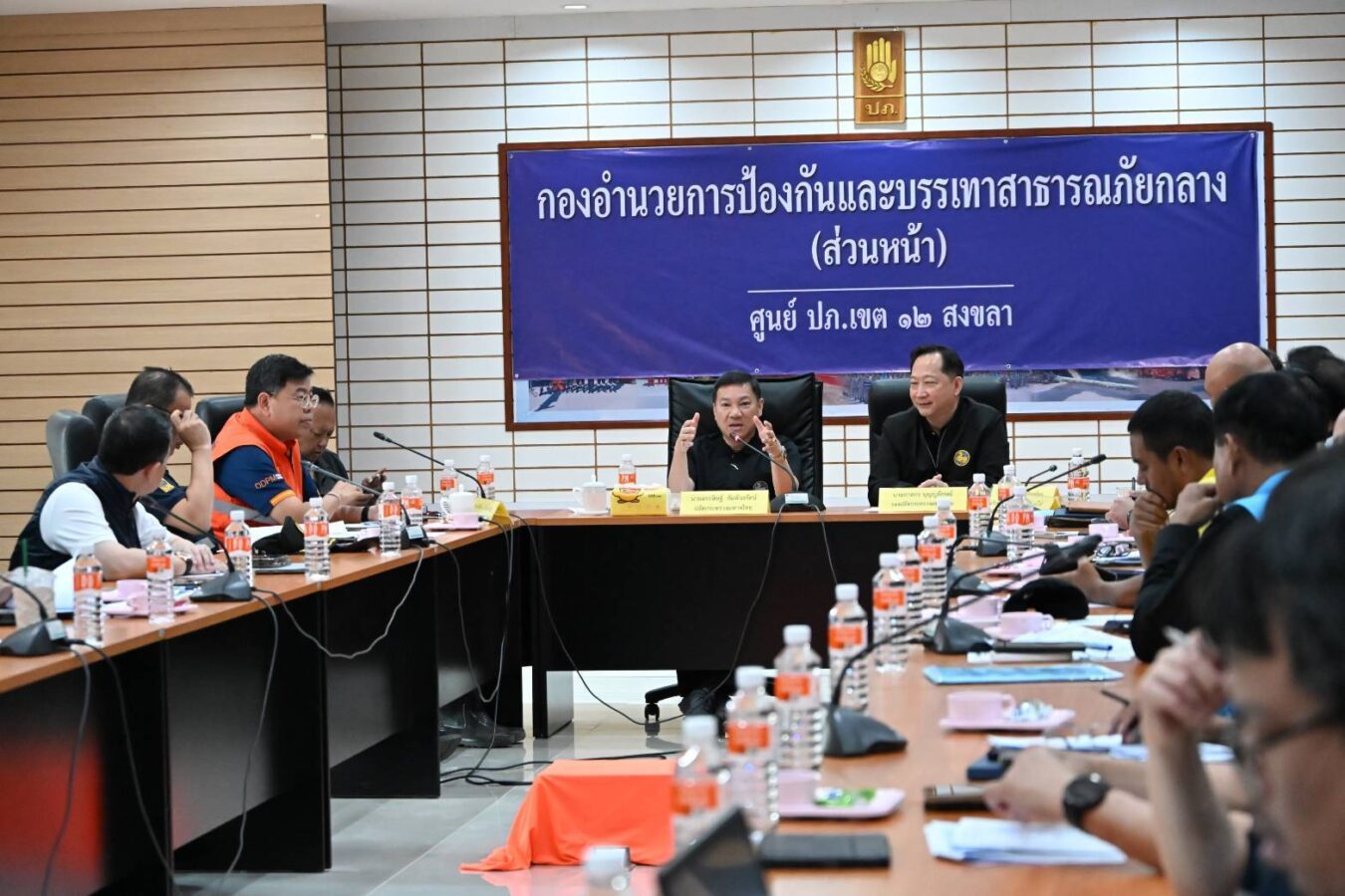 นายชัยรัตน์ แก้วเพียงเพ็ญ รองอธิบดีกรมป้องกันและบรรเทาสาธารณภัย นายเกิดศักดิ์ ยะโสธร รองอธิบดีกรมโยธาธิการและผังเมือง นายจิรวัตร์ มณีโชติ รองผู้ว่าราชการจังหวัดสงขลา  หัวหน้าส่วนราชการ ฝ่ายปกครอง สาธารณสุข รวมถึงนายณรงค์พร ณ พัทลุง นายกเทศมนตรีนครหาดใหญ่ และเจ้าหน้าที่ทุกฝ่ายร่วมประชุม ณ กองอำนวยการป้องกันและบรรเทาสาธารณภัยกลาง (ส่วนหน้า) ศูนย์อำนวยการป้องกันและบรรเทาสาธารณภัยเขต 12 ขลา อ.หาดใหญ่ จ.สงขลา