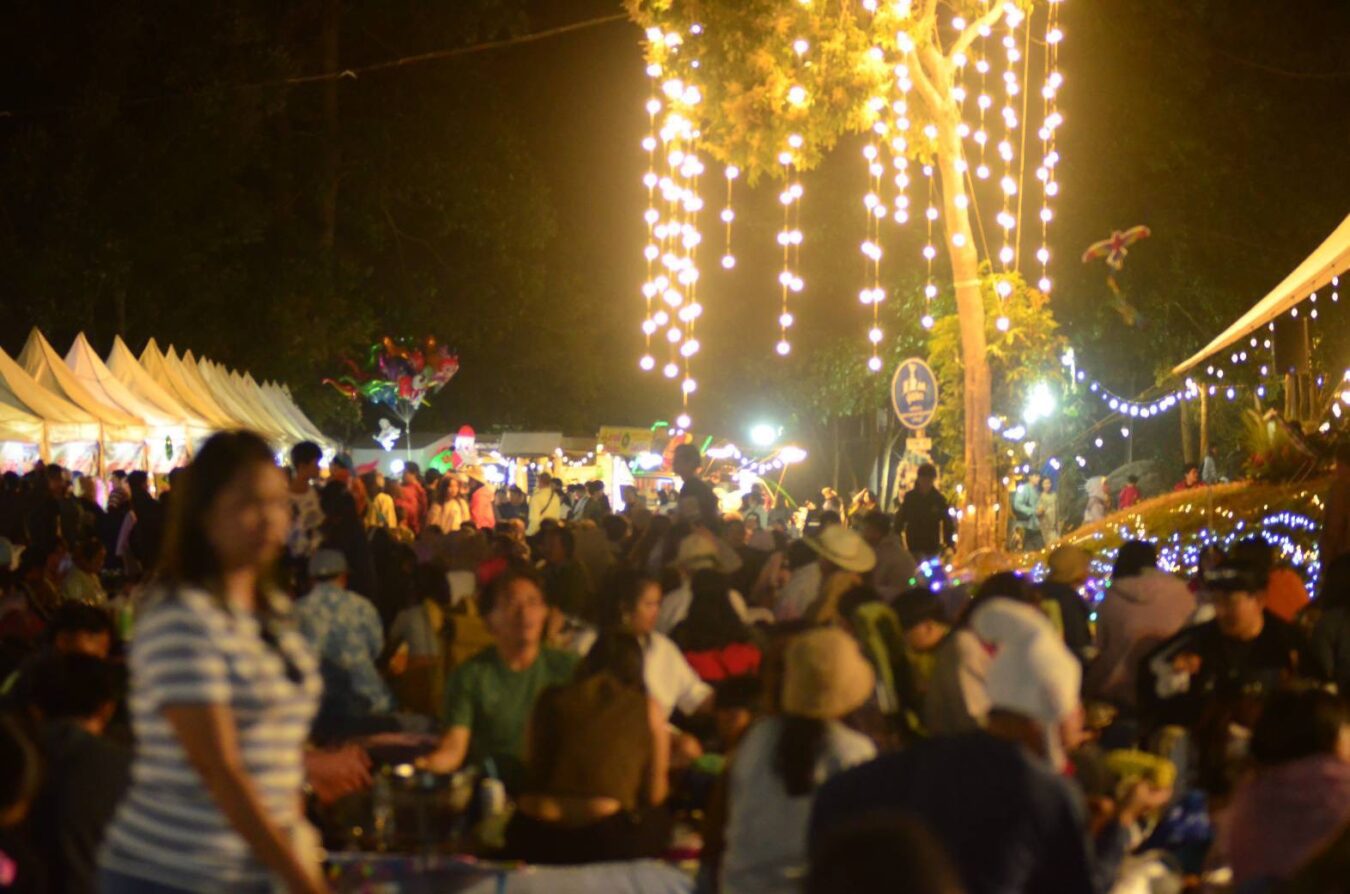 สำหรับเมนูยอดนิยมรับอากาศหนาว ยังคงเป็นอาหารปิ้งย่างหลากหลาย อาทิ ข้าวจี่ ข้าวโพดย่าง พิซซ่าร้อน ๆ และไฮไลต์ที่ได้รับความนิยมไม่แพ้กันคือ “หมูกระทะ” ซึ่งมีให้บริการตลอดงาน โดยพ่อค้าแม่ค้าเผยตรงกันว่า ปีนี้นักท่องเที่ยวเดินทางมาเป็นจำนวนมาก ส่งผลให้สินค้าที่นำมาจำหน่ายขายดีตลอดทั้งคืน