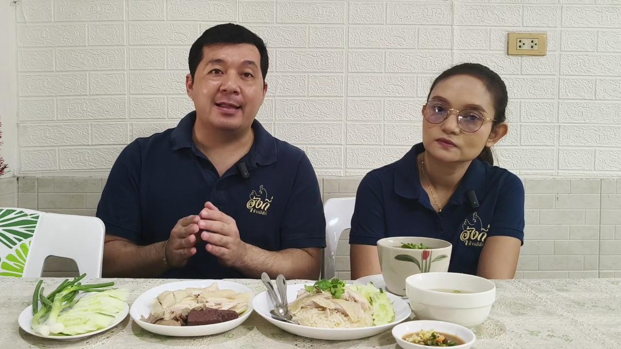 นายประเทศ จันทนพันธ์ เจ้าของร้านข้าวมันไก่ฮุ้งกี่ บอกว่า ตนและภรรยาทั้งคู่เรียนจบด้านเศรษฐศาสตร์มาจากต่างประเทศ และมาสานต่อกิจการหมูย่างเมืองตรัง ซึ่งเป็นธุรกิจครอบครัว ตอนนั้นตั้งชื่อ “นายอ้วนหมูย่างเมืองตรัง” แต่การทำหมูย่างเมืองตรัง มีขั้นตอนการทำมาก และใช้เวลาในการทำนาน จึงอยากลองหาอาชีพใหม่