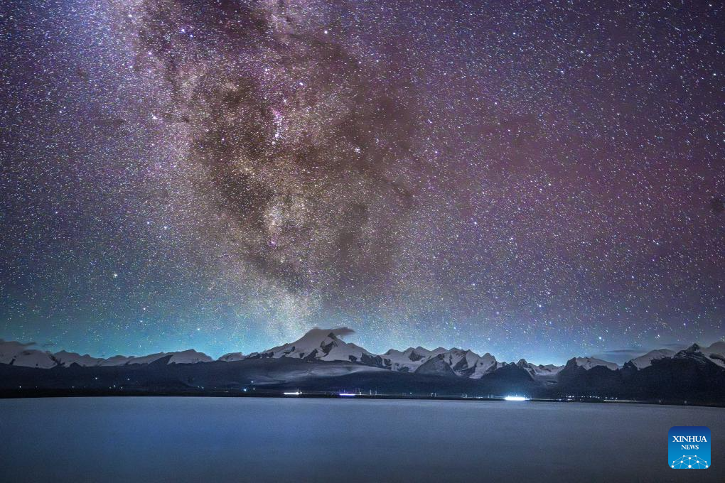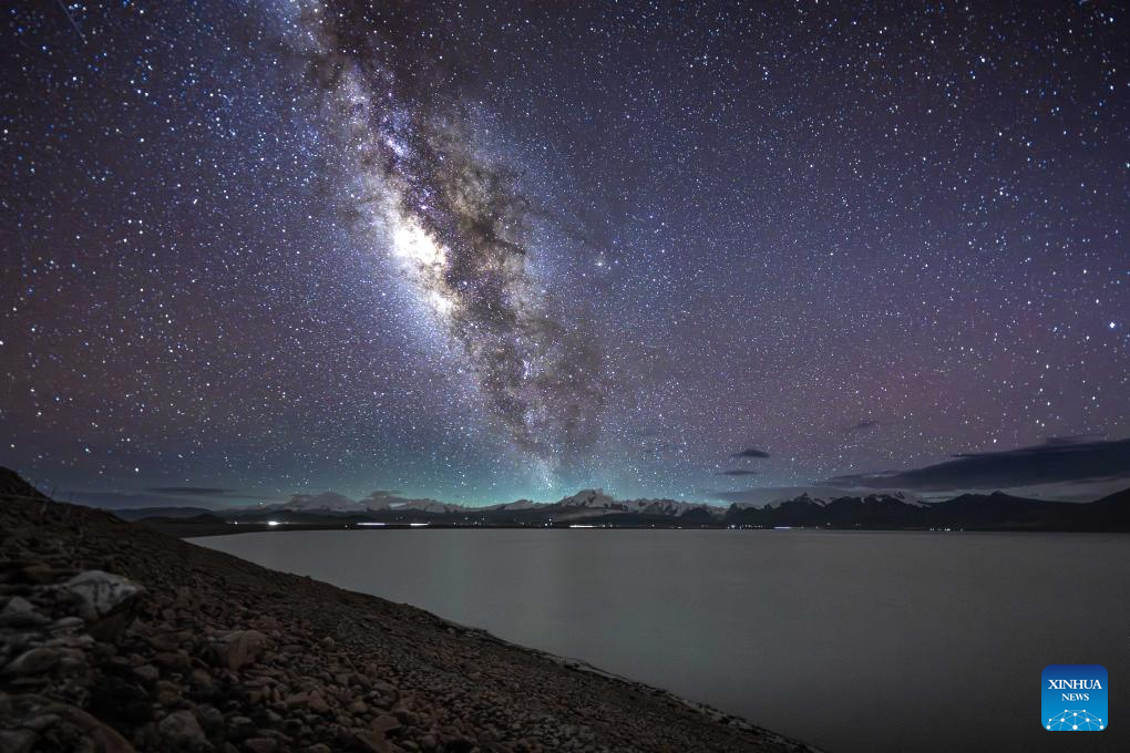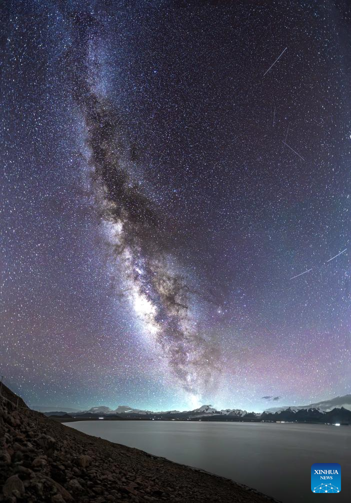 ภาพถ่ายนี้ถ่ายเมื่อวันที่ 14 สิงหาคม พ.ศ. 2568 แสดงให้เห็นภาพของทางช้างเผือกและฝนดาวตกเหนือทะเลสาบไป๋คู่ ในเมืองยรื่อคาเจ๋อ เขตปกครองตนเองซีจ้าง (ทิเบต) ทางตะวันตกเฉียงใต้ของจีน (ซินหัว)