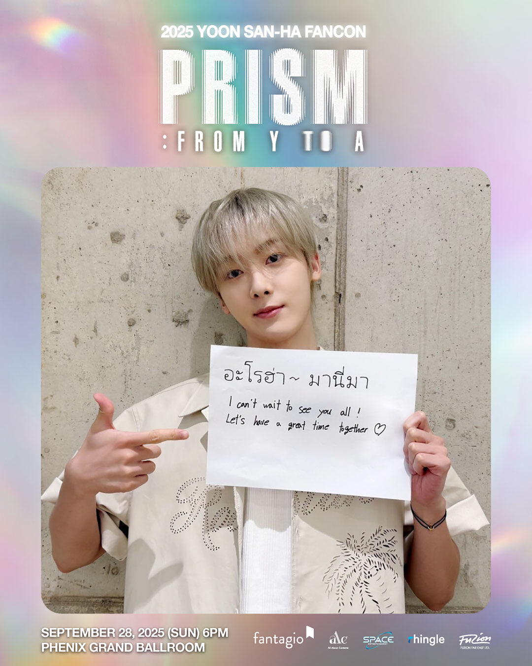 หนุ่ม ยุนซานฮา ตั้งใจเขียนข้อความภาษาไทยด้วยลายมือมาอ้อนแฟนคลับชาวไทย ชวนทุกคนมาสนุกไปด้วยกันกับแฟนคอนเสิร์ตเดี่ยว “2025 YOON SAN-HA FANCON [PRISM : from Y to A] in Bangkok” ซึ่งจะจัดขึ้นในวันอาทิตย์ที่ 28 กันยายน 2568 เวลา 6 โมงเย็น ณ PHENIX GRAND BALLROOM