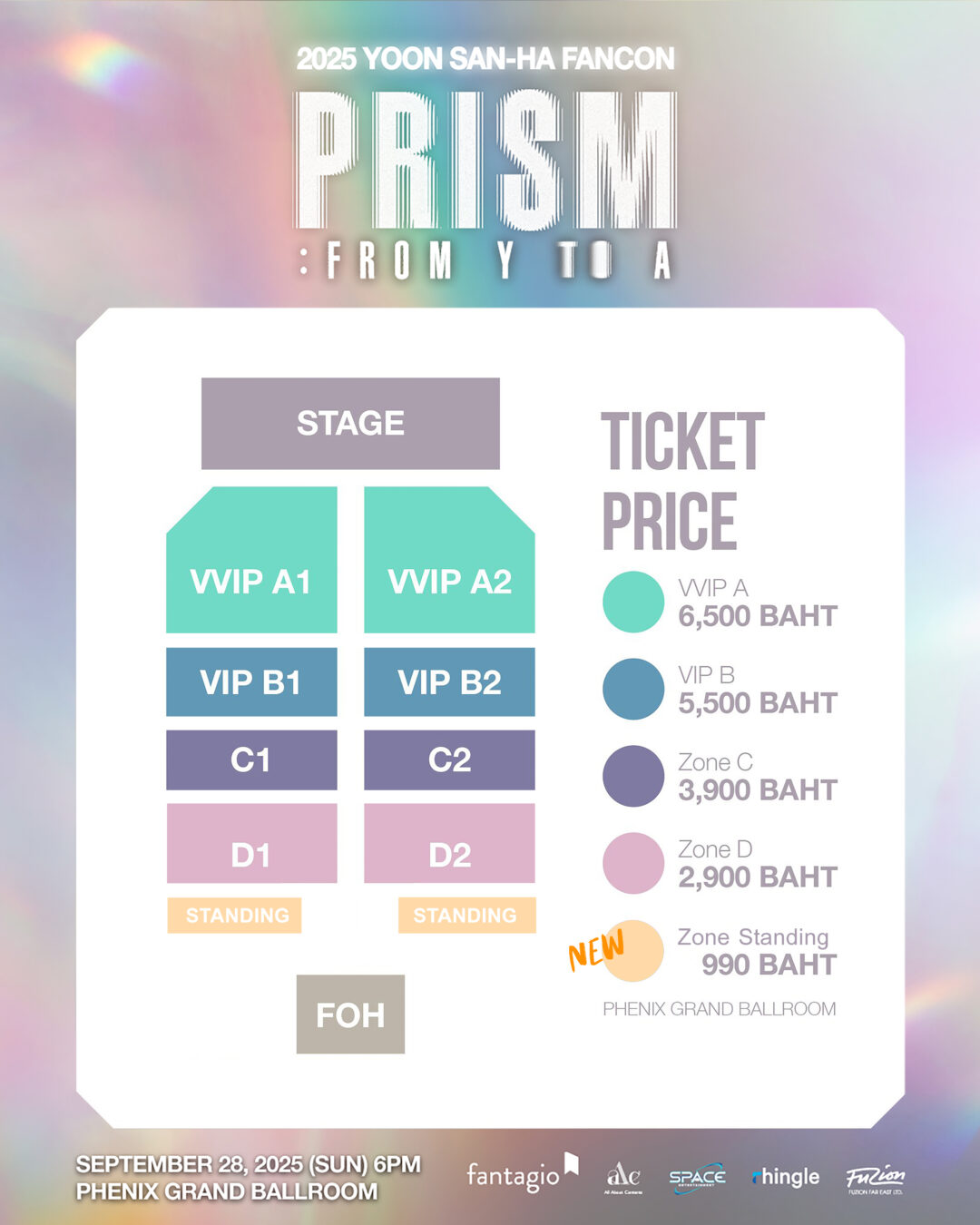 สำหรับใครที่ยังลังเล ผู้จัด สเปซ เอ็นเตอร์เทนเมนต์ (SPACE ENTERTAINMENT) ได้เพิ่มโซนบัตรยืนในราคาย่อมเยาที่ 990 บาท ให้เป็นตัวเลือกสำหรับแฟน ๆ กันอีกด้วย โดยสามารถติดต่อซื้อบัตรยืนดังกล่าวได้ที่ LINE @347dxhcz https://line.me/R/ti/p/@347dxhcz