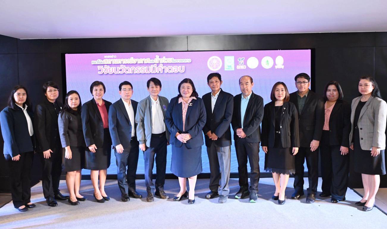 สำนักงานการวิจัยแห่งชาติ(วช.) กระทรวงการอุดมศึกษา วิทยาศาสตร์ วิจัยและนวัตกรรม ร่วมกับเครือข่ายวิจัย ประกอบด้วย จุฬาลงกรณ์มหาวิทยาลัย มหาวิทยาลัยเกษตรศาสตร์ และกรมอุตุนิยมวิทยา จัดกิจกรรมแถลงข่าว “แนวโน้มสถานการณ์อากาศและน้ำท่วมในภาคกลาง วิจัยนวัตกรรมมีคำตอบ” โดย ดร.วิภารัตน์ ดีอ่อง ผู้อำนวยการสำนักงานการวิจัยแห่งชาติ เป็นประธาน ณ ศูนย์ข้อมูลสารสนเทศกลางด้านวิทยาศาสตร์ วิจัยและนวัตกรรมของประเทศ วช.