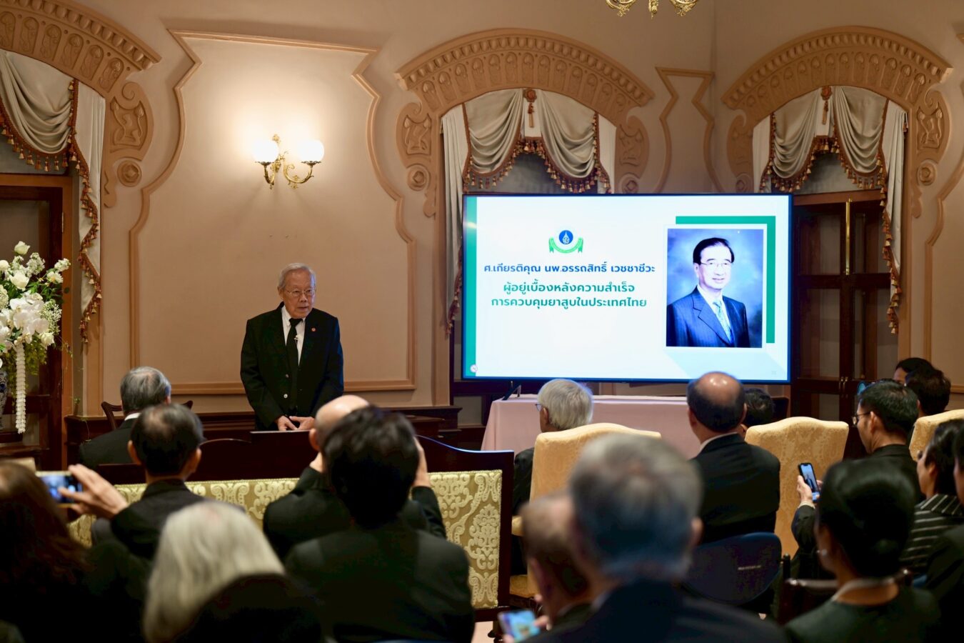 ศ.นพ.ประกิต วาทีสาธกกิจ ประธานมูลนิธิรณรงค์เพื่อการไม่สูบบุหรี่ กล่าวปาฐกถาหัวข้อ “ศาสตราจารย์เกียรติคุณ นายแพทย์อรรถสิทธิ์ เวชชาชีวะ ผู้อยู่เบื้องหลังความสำเร็จในการควบคุมยาสูบในประเทศไทย” ว่า การจัดงานครั้งนี้เพื่อรำลึกถึงคุณูปการของศาสตราจารย์เกียรติคุณ นายแพทย์อรรถสิทธิ์ เวชชาชีวะ อดีตนายกราชบัณฑิตยสถาน ผู้มีบทบาทสำคัญในการริเริ่มและผลักดันการรณรงค์ลดการสูบบุหรี่ในประเทศไทยให้ประสบผลสำเร็จเป็นที่ยอมรับในระดับนานาชาติ ตลอดจนเป็นการเผยแพร่คุณงามความดีของท่านให้สาธารณชนได้ตระหนักถึงจิตวิญญาณแห่งความเสียสละเพื่อส่วนรวม