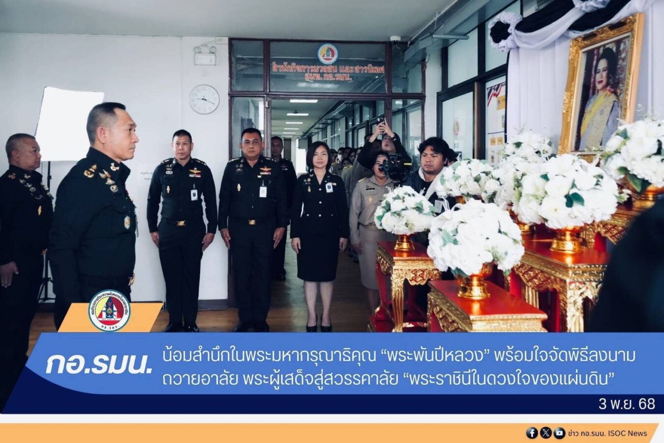 เมื่อวันวานที่ผ่านมาวันที่ 3 พฤศจิกายน 2568 ตั้งแต่เวลา 09.09 น. กองอำนวยการรักษาความมั่นคงภายในราชอาณาจักร(กอ.รมน.) โดย พลโท ธนาธิป สว่างแสง ผู้อำนวยการสำนักกิจการมวลชนและสารนิเทศ กอ.รมน. (ผอ.สมท.กอ.รมน.) คณะผู้บริหาร ข้าราชการ พนักงานราชการ และลูกจ้าง น้อมสำนึกในพระมหากรุณาธิคุณอันหาที่สุดมิได้ พร้อมใจจัดพิธีลงนามกราบถวายความอาลัยเบื้องหน้าพระฉายาลักษณ์ สมเด็จพระนางเจ้าสิริกิติ์ พระบรมราชินีนาถ พระบรมราชชนนีพันปีหลวง ณ สำนักกิจการมวลชนและสารนิเทศ กอ.รมน. พระองค์ทรงบำเพ็ญพระราชกรณียกิจต่างๆ