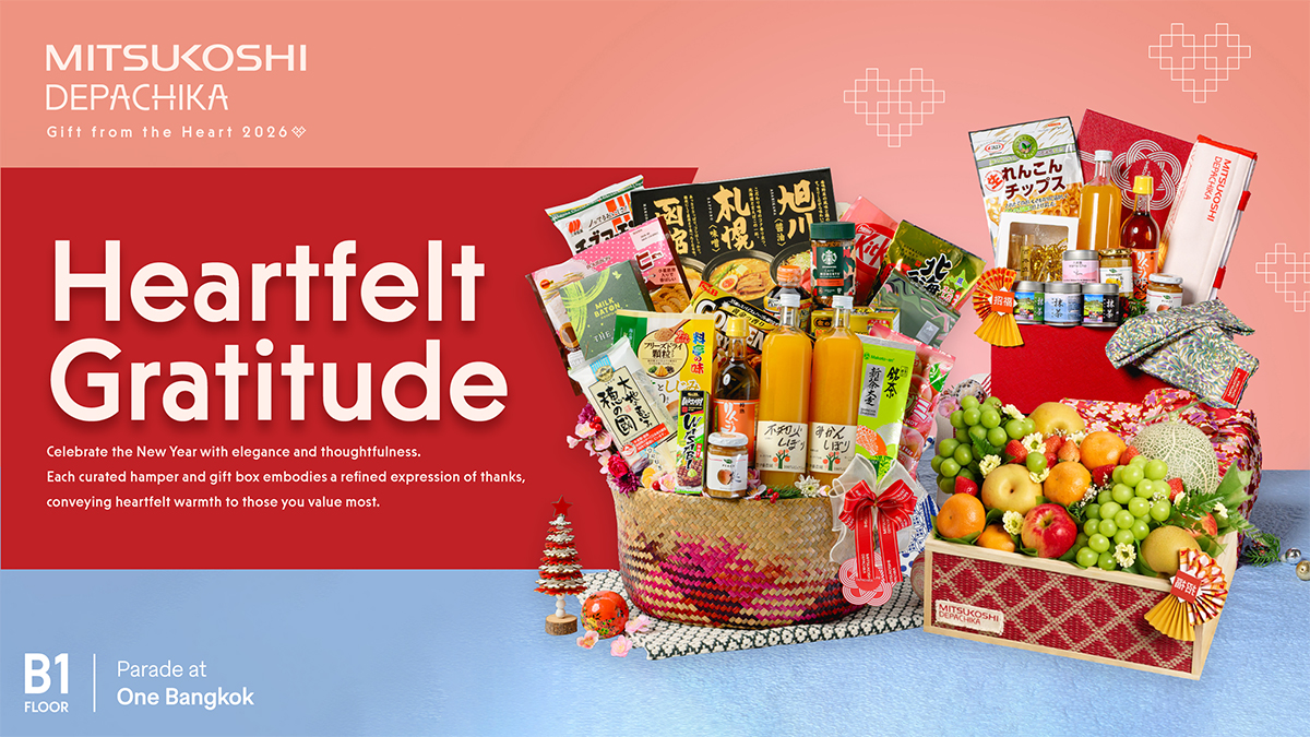 มิตซูโคชิ เดปาจิกะ ซูเปอร์มาร์เก็ต-ฟู้ดฮอลล์ (Mitsukoshi Depachika) ศูนย์รวมอาหารและโกรเซอรีระดับพรีเมียมตามแบบฉบับของซูเปอร์มาร์เก็ตและฟู้ดฮอลล์ในห้างสรรพสินค้าชั้นนําของญี่ปุ่น สาขาแรกของประเทศไทยในโครงการ วัน แบงค็อก ขอเชิญชวนทุกท่านร่วมเฉลิมฉลองเทศกาลแห่งความสุข ส่งต่อความปรารถนาดี และมอบคำขอบคุณเพื่อต้อนรับศักราชใหม่ปี 2569 ด้วยคอลเลคชันกระเช้าของขวัญปีใหม่สุดเอ็กซ์คลูซีฟ “New Year Hamper – GIFT FROM THE HEART” ครั้งแรกในประเทศไทย ที่ผสมผสานวัฒนธรรมการให้ของขวัญสไตล์ญี่ปุ่นต้นตำรับ ซึ่งเต็มไปด้วยจิตวิญญาณแห่งการให้ที่เปี่ยมความหมาย (Omotenashi) ผ่านการบริการที่มาจากใจและใส่ใจในทุกรายละเอียด เข้ากับสินค้าคุณภาพดีที่คัดสรรมาอย่างพิถีพิถัน เพื่อเติมเต็มความสุข ส่งต่อความรักความห่วงใย และคำขอบคุณจากผู้ให้สู่คนพิเศษ เริ่มจำหน่ายตั้งแต่วันนี้ ถึงวันที่ 7 มกราคม 2569 ณ มิตซูโคชิ เดปาจิกะ โซน Gift Corner ชั้น B1 ตึกพาเหรด โครงการวัน แบงค็อก