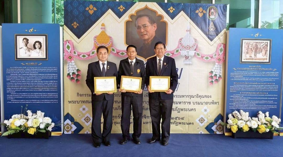 นายสลากุล ประเสริฐดี, นายปิยะศักดิ์ พงศ์อัมพรศักดา และนายปรกธณ แสงนิล ได้รับมอบเกียรติบัตร”พ่อดีเด่นแห่งชาติราชภัฎพระนคร” ครั้งที่ ๑๐ พฤศจิกายน 2568 เนื่องในโอกาสกิจกรรมวันคล้ายวันพระราชสมภพ พระบาทสมเด็จพระบรมชนกาธิเบศร มหาภูมิพลอดุลยเดชมหาราช บรมนาถบพิตร วันพ่อแห่งชาติ ณ หอประชุมภัทรมหาราช วิทยาลัยราชภัฎพระนคร