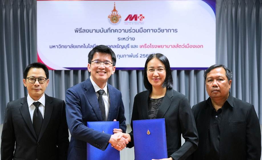 เครือโรงพยาบาลสัตว์เมืองเอก โดย บริษัท เวทแคร์ พาร์ทเนอร์ส จำกัด นำโดย นายไลโอเนล โซห์ วี ฉัว (จากซ้าย คนที่ 2) ประธานกรรมการบริษัท และนายศรายุธ อัสสมกร (ซ้ายสุด) ประธานเจ้าหน้าที่บริหาร พร้อมด้วย ผศ.ดร.ลลิตา ศิริวัฒนานนท์ (จากซ้าย คนที่ 3) คณบดี คณะเทคโนโลยีการเกษตร และ ผศ.น.สพ.การันต์ ชีพนุรัตน์ (ขวาสุด) ประธานหลักสูตรสาขาการพยาบาลสัตว์ ลงนามบันทึกความเข้าใจข้อตกลงความร่วมมือทางวิชาการ โดยมีวัตถุประสงค์ที่มุ่งเน้นสนับสนุนการศึกษาทั้งภาคทฤษฎีและภาคปฏิบัติด้านการพยาบาลสัตว์ การฝึกประสบการณ์วิชาชีพในรูปแบบสหกิจศึกษา เพื่อให้นักศึกษาได้มีโอกาสนำเอาความรู้ทางวิชาชีพการพยาบาลสัตว์ที่ได้จากการเรียนการศึกษามาใช้ในทางปฏิบัติผ่านการฝึกงาน ณ สถานที่ประกอบการจริง ด้านกระบวนการพยาบาลสัตว์ การสนับสนุนด้านการรักษา การผ่าตัด