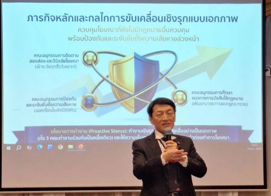 ในการนี้ สคบ. ได้เชิญ นายวรเทพ สกุลพิชัยรัตน์ อัยการพิเศษฝ่ายชี้ขาดคดีอัยการสูงสุด 1.ในฐานะ ประธานกรรมการว่าด้วยโฆษณา สำนักงานคณะกรรมการคุ้มครองผู้บริโภค (สคบ) บรรยายในหัวข้อ “ บทบาท หน้าที่ และกลไกการดำเนินงานคุ้มครองผู้บริโภคด้านโฆษณา ” โดยได้รับความสนใจจากผู้เข้ารับการอบรมซักถามปัญหาข้อกฎหมาย เกี่ยวกับการคุ้มครองผู้บริโภคด้านโฆษณา เป็นจำนวนมาก